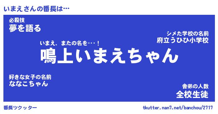 | ポケモン風あだ名 | 『イマチュウ』『イマエダネ』 |