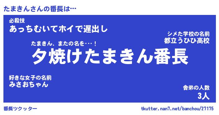 | ヒーロー風カッコイイあだ名 | 『スーパータマキン』『魔戒騎士タマ』 |