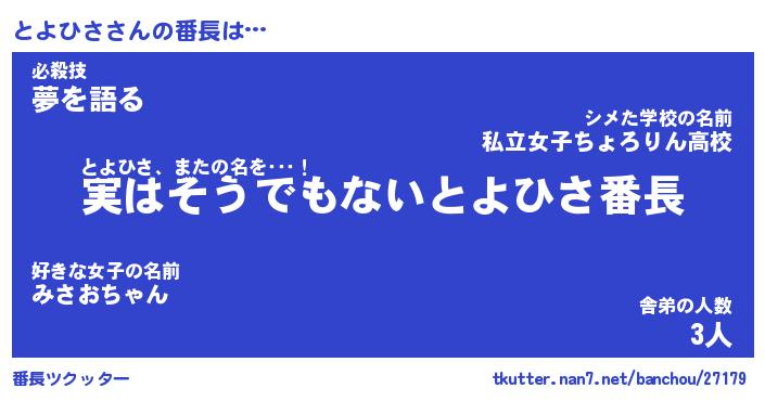 | 肩書あだ名 | 『とよひさ店長』『とよひさ総理大臣』 |