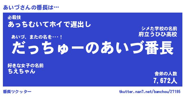 | ヒーロー風カッコイイあだ名 | 『スーパーアイヅ』『ウルトラあいづマン』 |