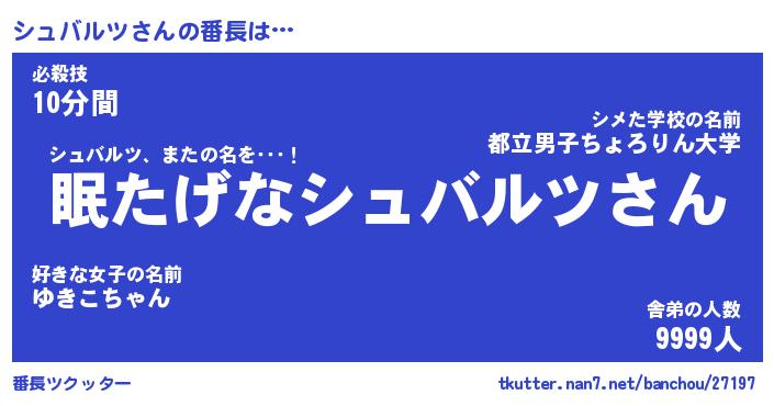 ポケモン風あだ名 | 『シュチュウ』『シュバダネ』 |