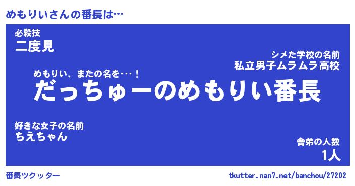 | ヘコむあだ名 | 『めもにゅー』『酢こんぶ』『めもお』 |
