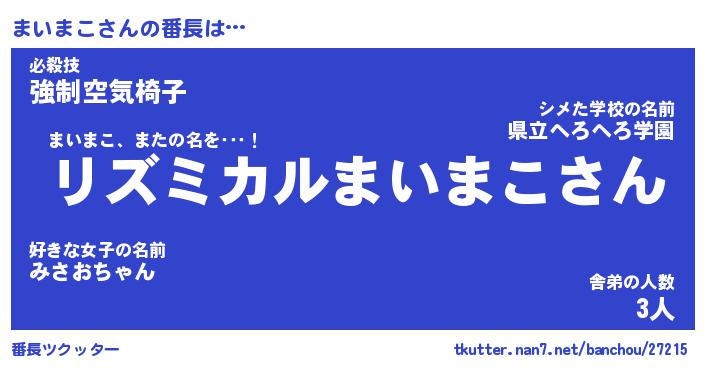| 意味不明あだ名 | 『ペロリンまいまこ』『永久保存まいまこ』 |
