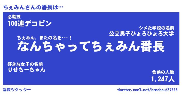 | 男性向けラノベタイトル風あだ名 | 『ちぇみんの憂鬱』 |