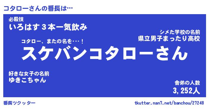 | 肩書あだ名 | 『コタロー御曹司』『コタロー国家主席』 |