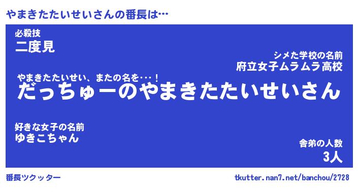 | ヒーロー風カッコイイあだ名 | 『スーパーヤマキタタイセイ』 |