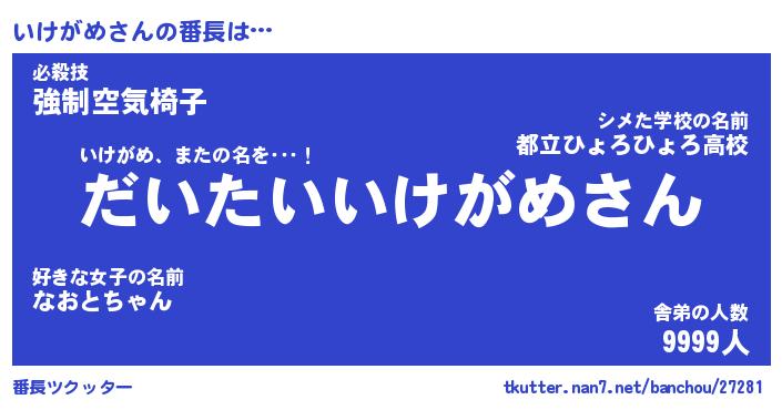 | ポケモン風あだ名 | 『イケチュウ』『イケガダネ』 |