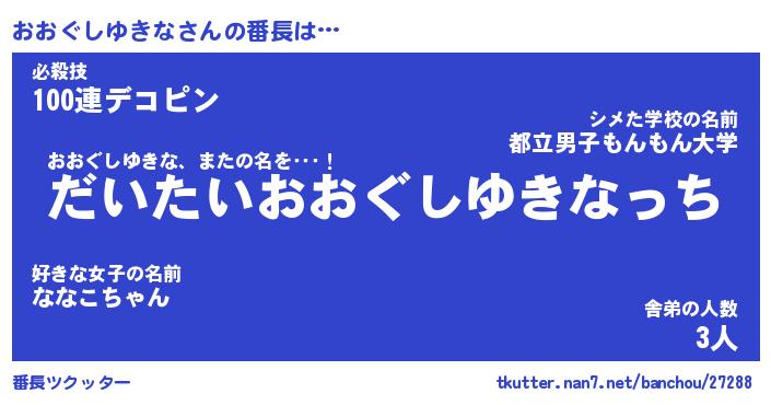 | ヘコむあだ名 | 『おおにゅー』『なまこ酢』 |