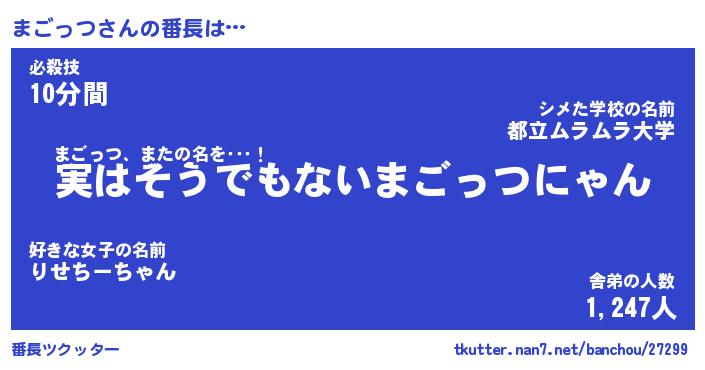 | ヘコむあだ名 | 『まごにゅー』『牛乳』『まごを』 |