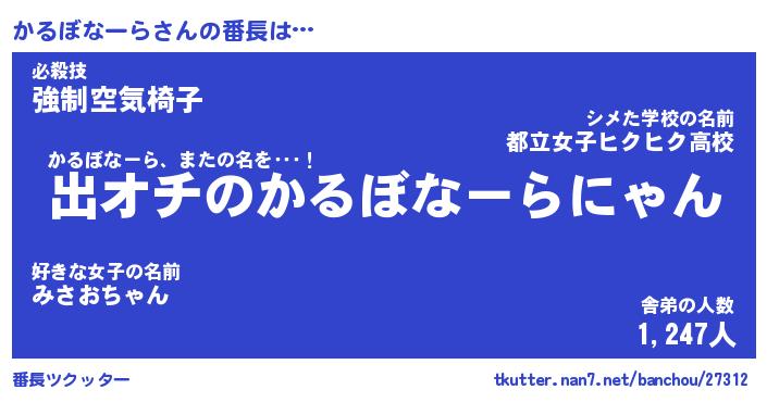 | 肩書あだ名 | 『かるぼなーら店長』『かるぼなーら団長』 |