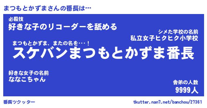 | ヘコむあだ名 | 『まつにー』『なまこ酢』『まつ太郎』 |