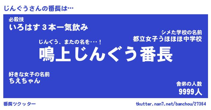 | 肩書あだ名 | 『じんぐう御曹司』『じんぐう大統領』 |