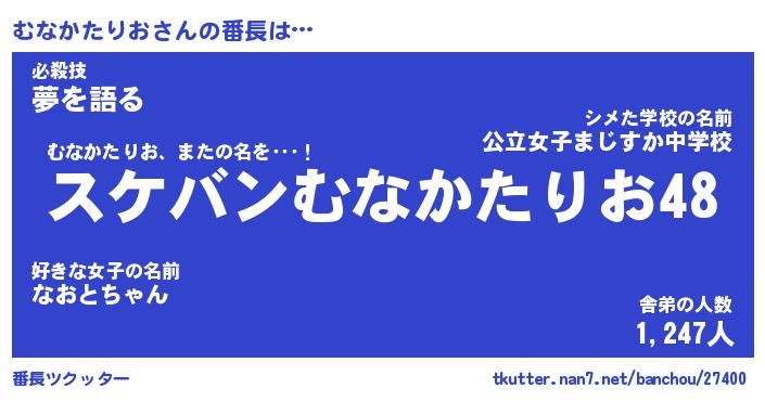| 男性向けラノベタイトル風あだ名 | 『ムナカタリオアートオンライン』 |