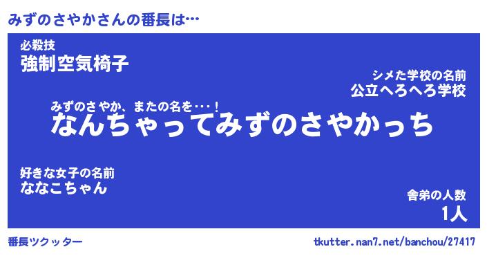 | ヘコむあだ名 | 『みずふぇ~』『つくし』 |