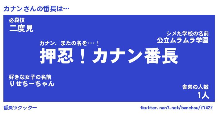 | ヒーロー風カッコイイあだ名 | 『スーパーカナン』『ウルトラカナンマン』 |