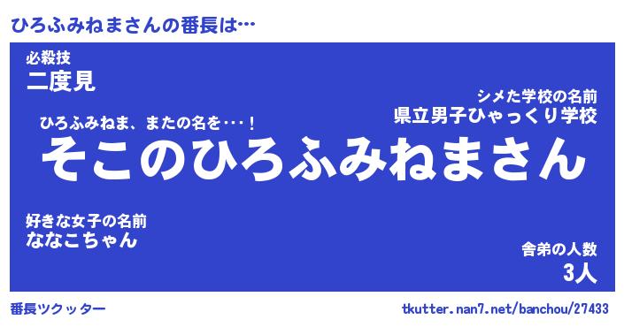 | 胡散臭い通販商品みたいなあだ名 | 『モテモテ間違いなし水晶球…その名も「ひろふみねま」』 |