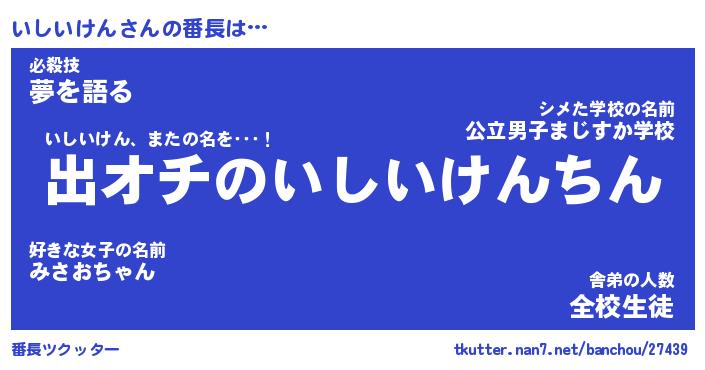 | ファンタジー風あだ名 | 『イシフェル』『エターナルイシイケンー』 |