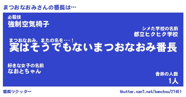 | 肩書あだ名 | 『まつおなおみ御曹司』 |
