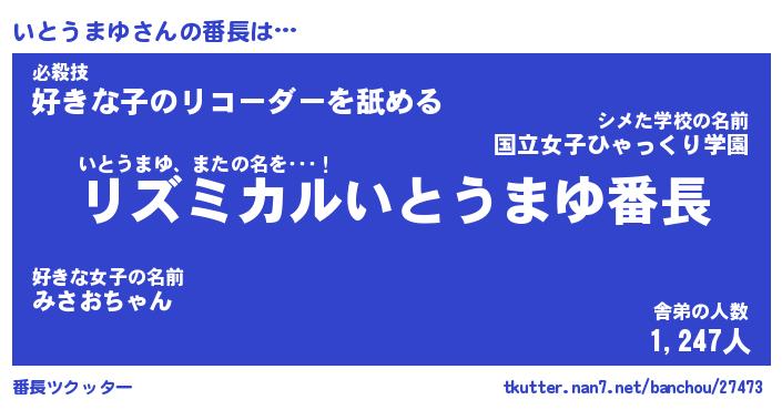 | 意味不明あだ名 | 『ペロリンいとうまゆ』 |