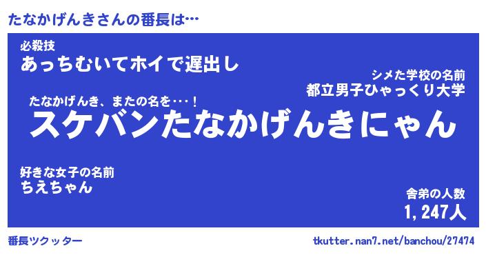 | ポケモン風あだ名 | 『タナチュウ』『タナカダネ』 |