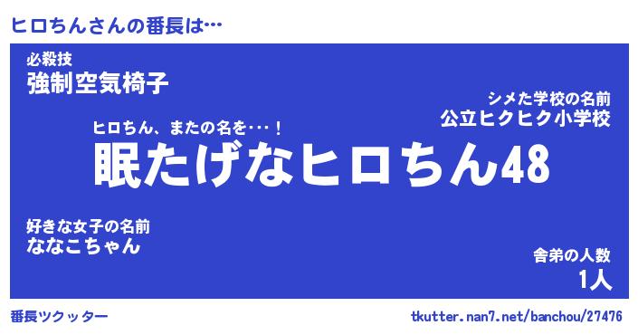 | 意味不明あだ名 | 『ペロリンヒロちん』『永久保存ヒロちん』 |