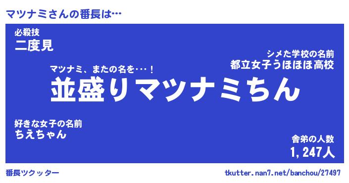 | 意味不明あだ名 | 『ペロリンマツナミ』『永久保存マツナミ』 |