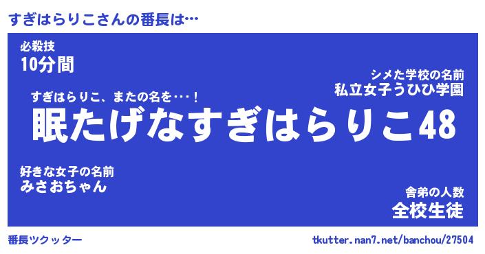 | 伝説のあだ名 | 『封印されしスナイパーすぎはらりこ』 |