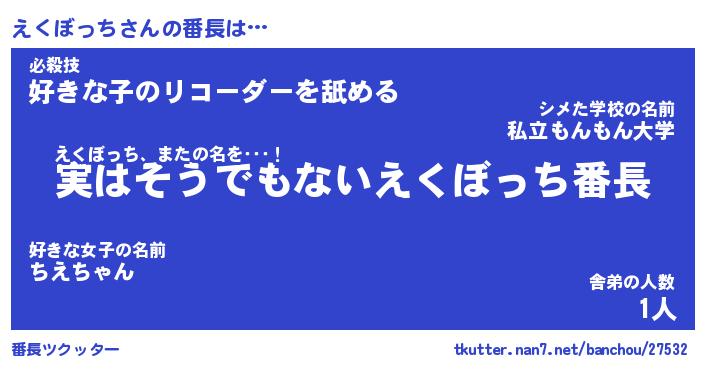 | ヘコむあだ名 | 『えくもー』『なまこ酢』『えくお』 |
