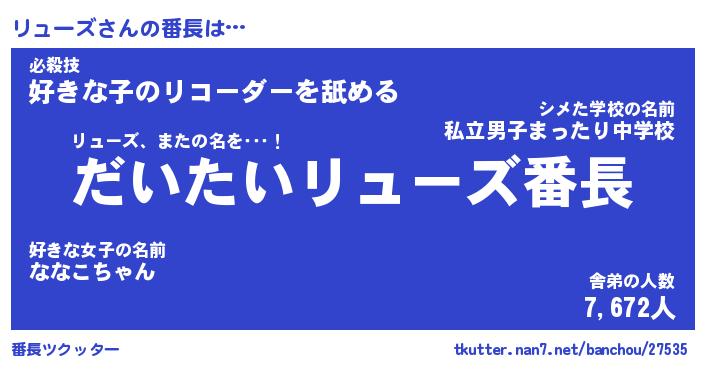 | 意味不明あだ名 | 『ペロリンリューズ』『永久保存リューズ』 |