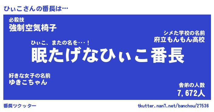 | ピコ太郎風あだ名 | 『ヒコ十郎』『ピヒ三郎』『ヒィ六郎』 |