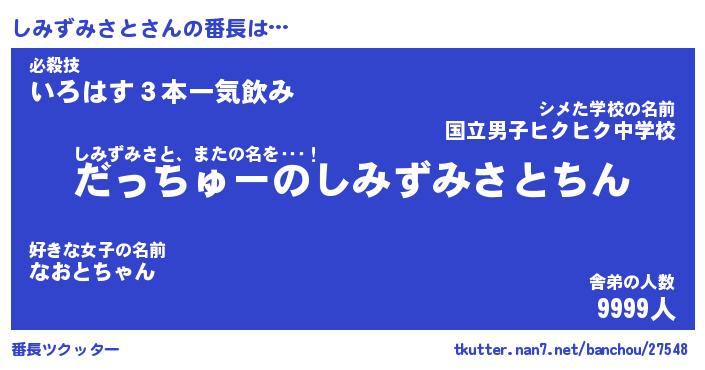 | 伝説のあだ名 | 『伝説のスナイパーしみずみさと』 |