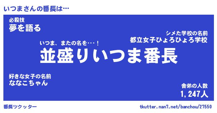 | ヒーロー風カッコイイあだ名 | 『スーパーイツマ』『ウルトラいつまマン』 |
