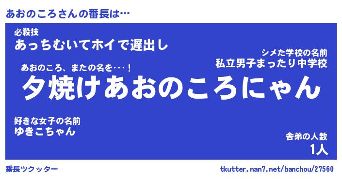 | ヒーロー風カッコイイあだ名 | 『スーパーアオノコロ』『暗黒騎士アオ』 |