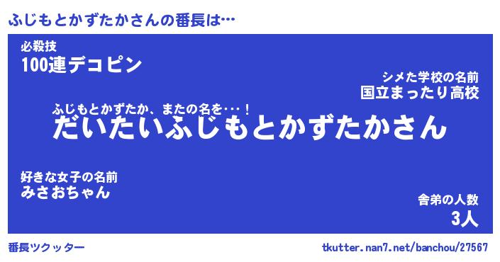 | ヒーロー風カッコイイあだ名 | 『スーパーフジモトカズタカ』 |