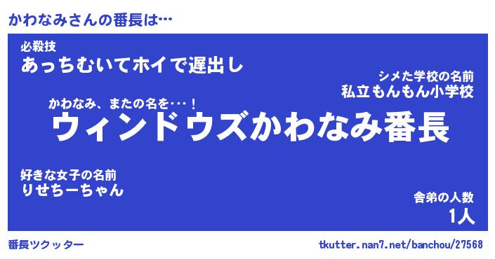 | 肩書あだ名 | 『かわなみ社長』『かわなみ総理大臣』 |