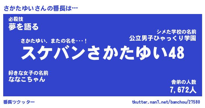 | ヒーロー風カッコイイあだ名 | 『スーパーサカタユイ』『黄金騎士サカ』 |