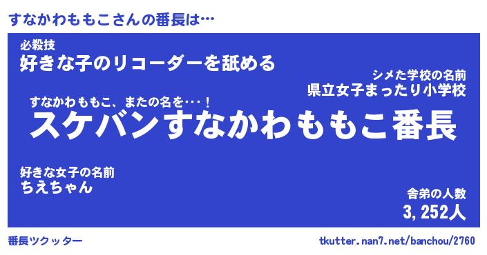 | 恥ずかしいあだ名 | 『プリティーすなかわももこ』『すなちん』 |