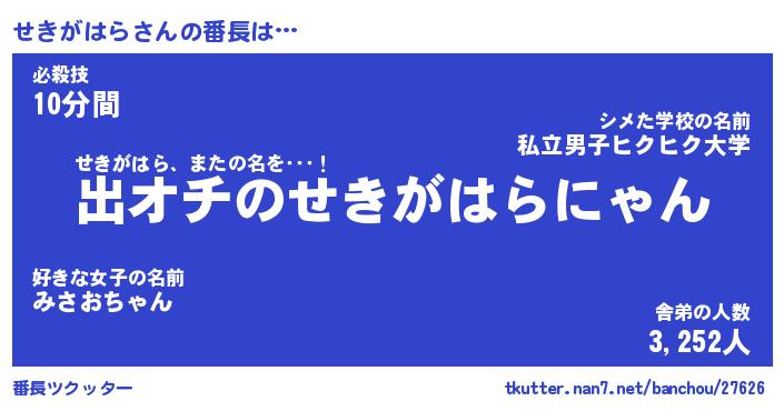 | ピコ太郎風あだ名 | 『セコ四郎』『ピセ次郎』『セキ六郎』 |