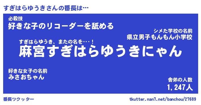 | 2回繰り返すあだ名 | 『すぎすぎ』『すすぎぎ』『ぬぷぬぷ』 |