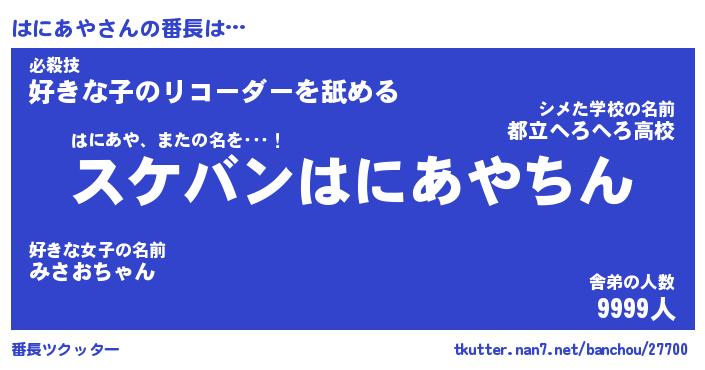 | 意味不明あだ名 | 『ペロリンはにあや』『永久保存はにあや』 |