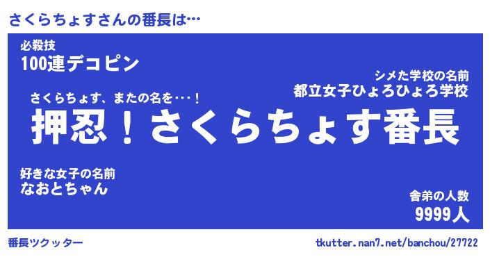 | ヒーロー風カッコイイあだ名 | 『スーパーサクラチョス』『天弓騎士サク』 |