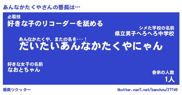 | ヒーロー風カッコイイあだ名 | 『スーパーアンナカタクヤ』 |