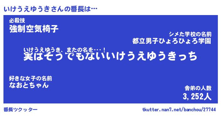 | 伝説のあだ名 | 『封印されしスナイパーいけうえゆうき』 |
