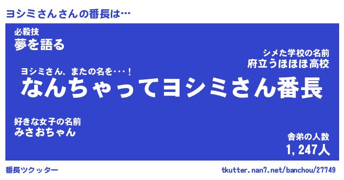 | ヒーロー風カッコイイあだ名 | 『スーパーヨシミサン』『銀牙騎士ヨシ』 |
