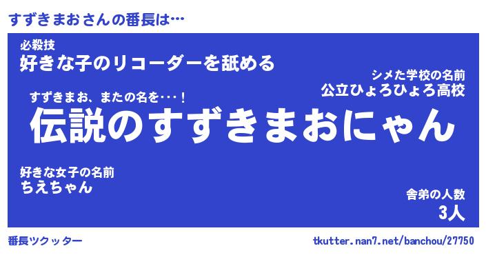 | 肩書あだ名 | 『すずきまお御曹司』『すずきまお塾長』 |