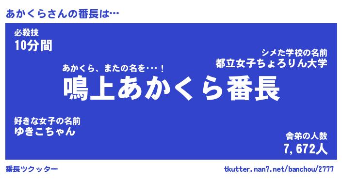 | ヘコむあだ名 | 『あかにー』『なまこ酢』『あかっぺ』 |