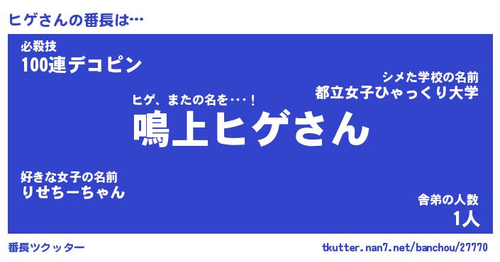 | ピコ太郎風あだ名 | 『ヒコ四郎』『ピヒ二郎』『ヒゲ十郎』 |