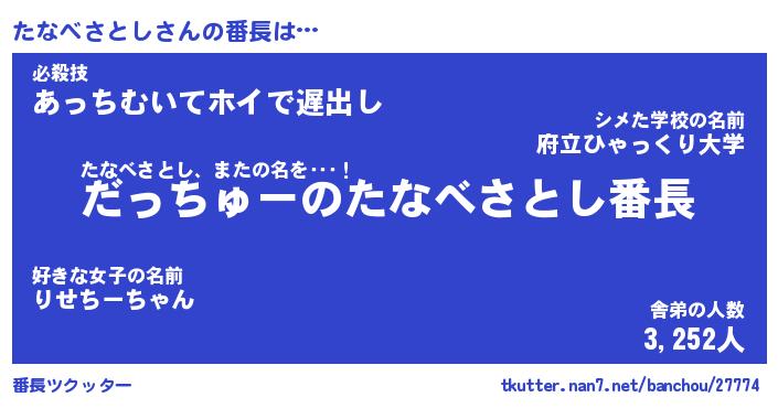 | ポケモン風あだ名 | 『タナチュウ』『タナベダネ』 |