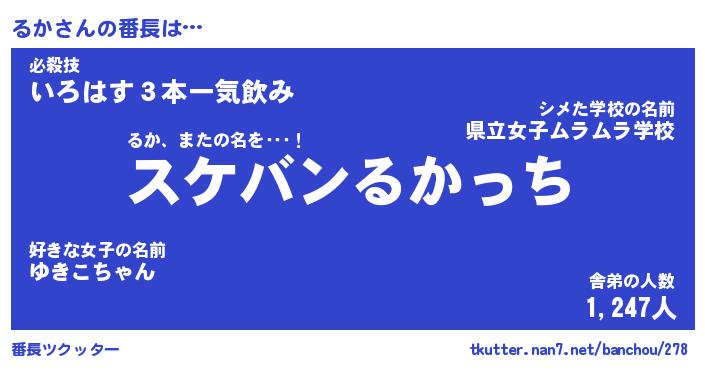 | ヘコむあだ名 | 『るかっふぃ~』『レバニラ』 |