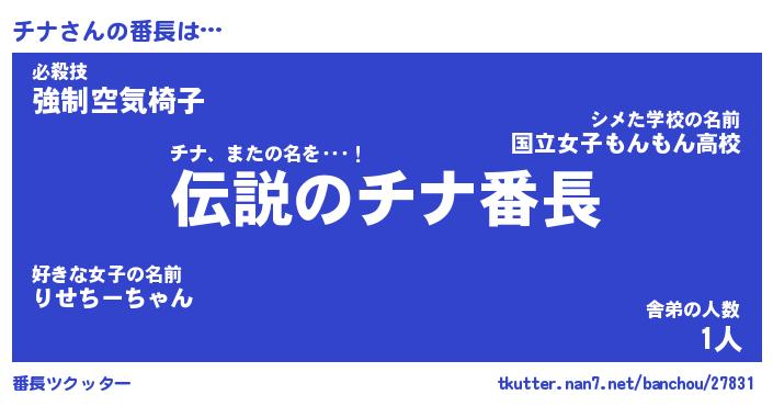 | ファンタジー風あだ名 | 『チナフェル』『エターナルチナー』 |